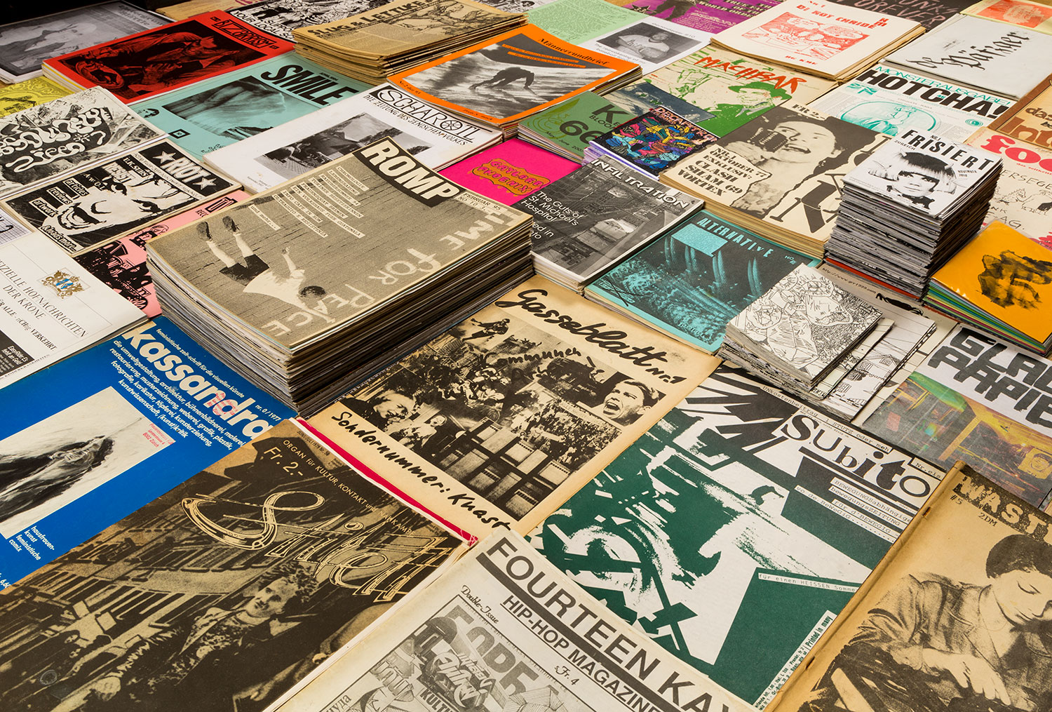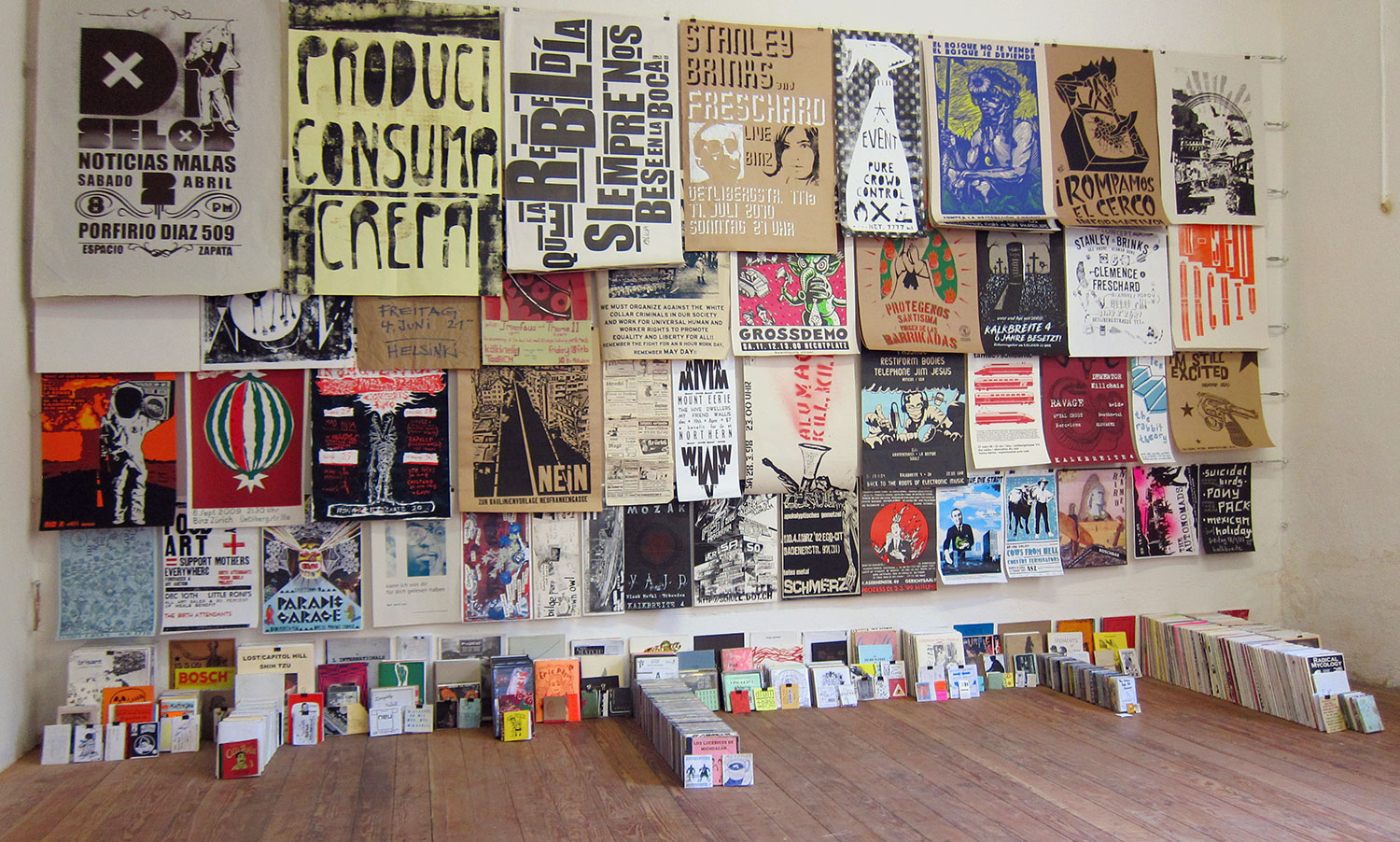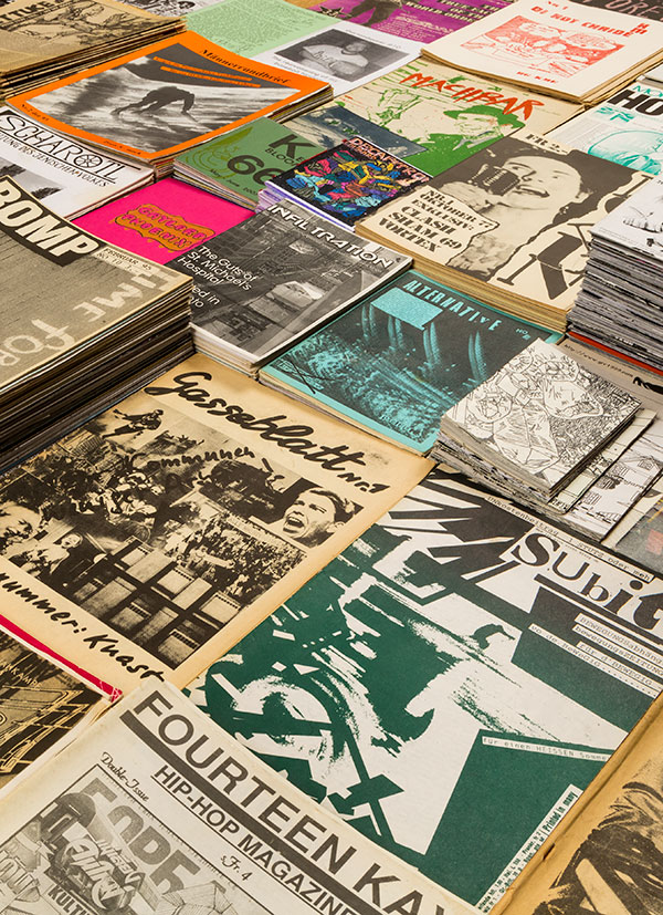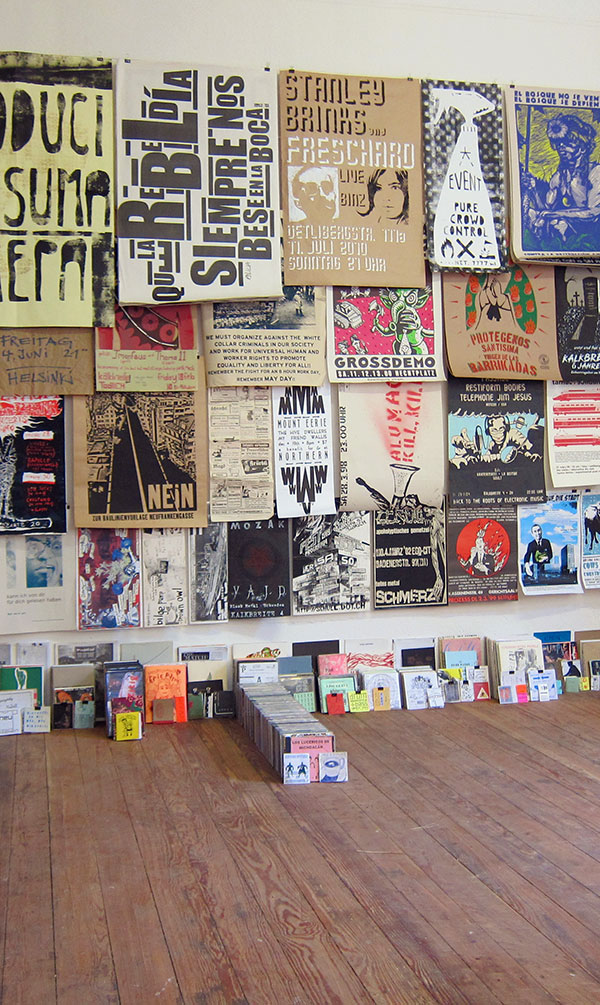 The collection documents a self-organised publishing practise outside of a commercial or academic context and includes over 15’000 objects: zines, pamphlets, audio-tapes, posters, books, newspapers, stickers, flyers, CD’s, video-tapes, DVD’s, memory sticks, floppy discs and more, from the 1960’s onwards.