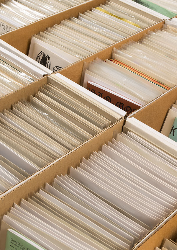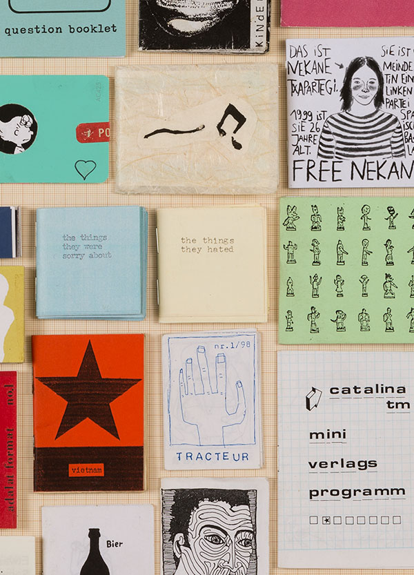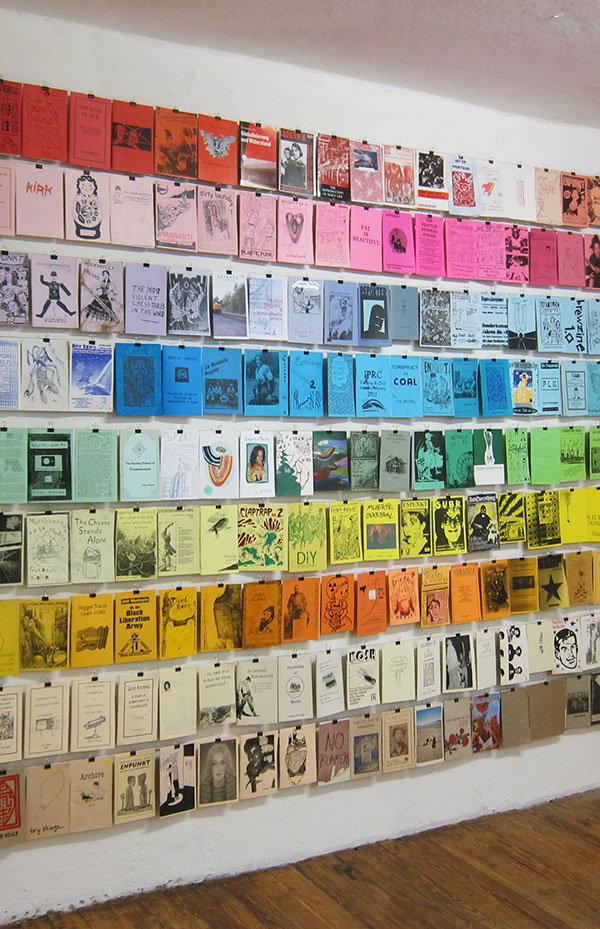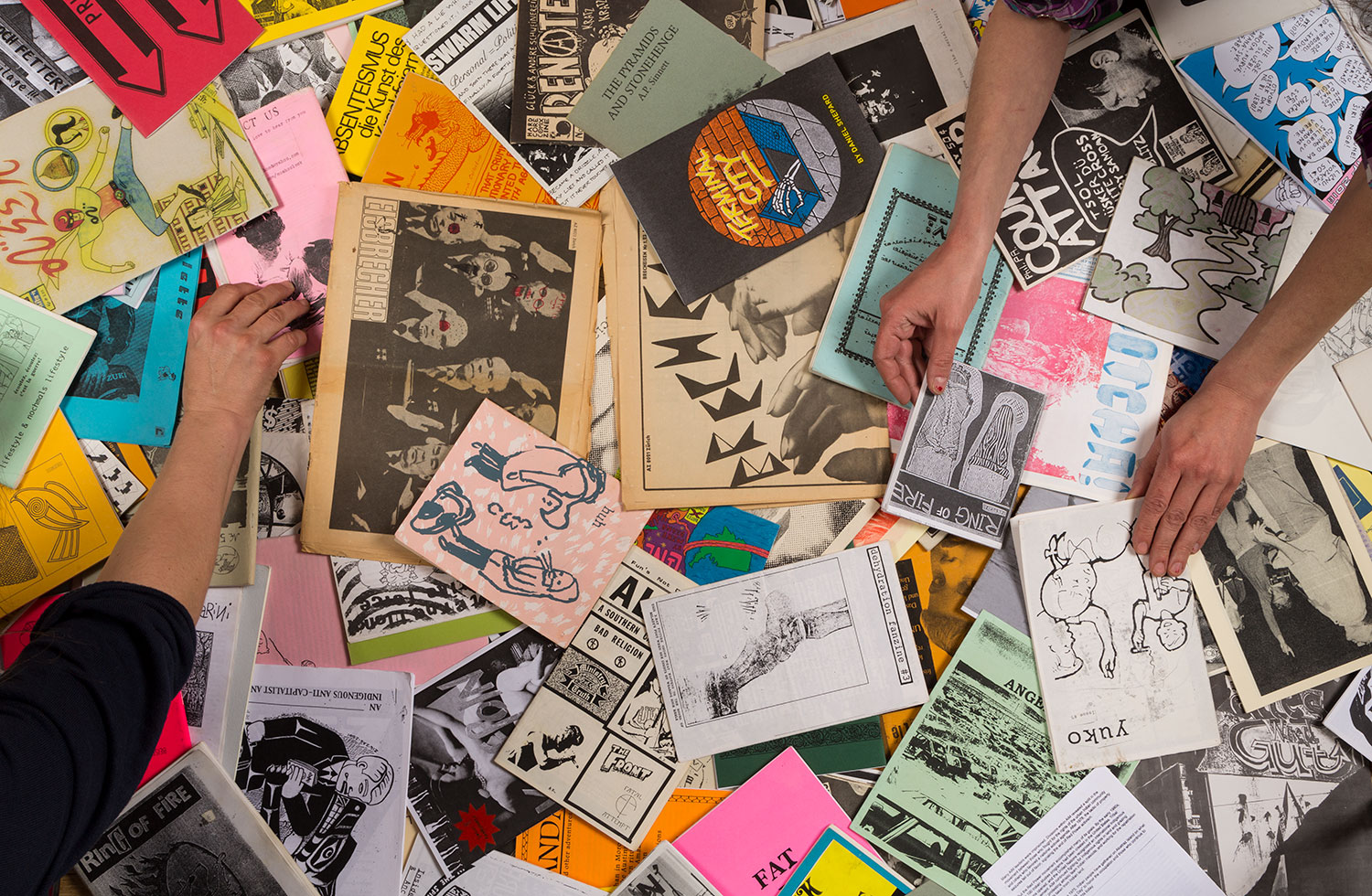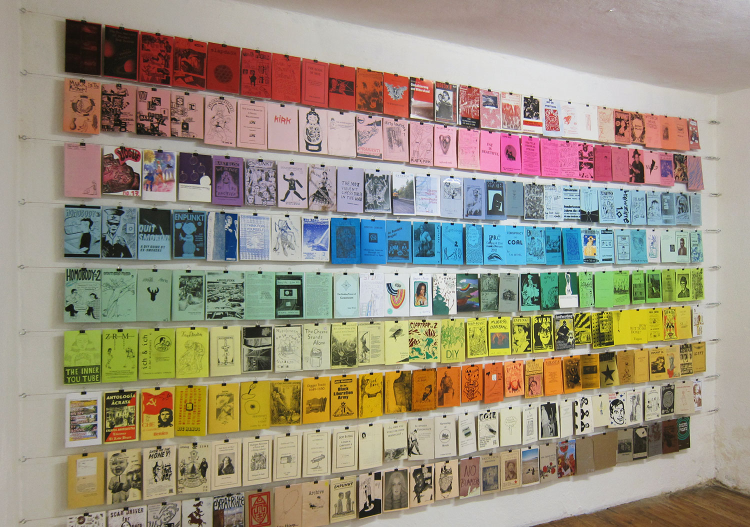 The collection documents a self-organised publishing practise outside of a commercial or academic context and includes over 15’000 objects: zines, pamphlets, audio-tapes, posters, books, newspapers, stickers, flyers, CD’s, video-tapes, DVD’s, memory sticks, floppy discs and more, from the 1960’s onwards.